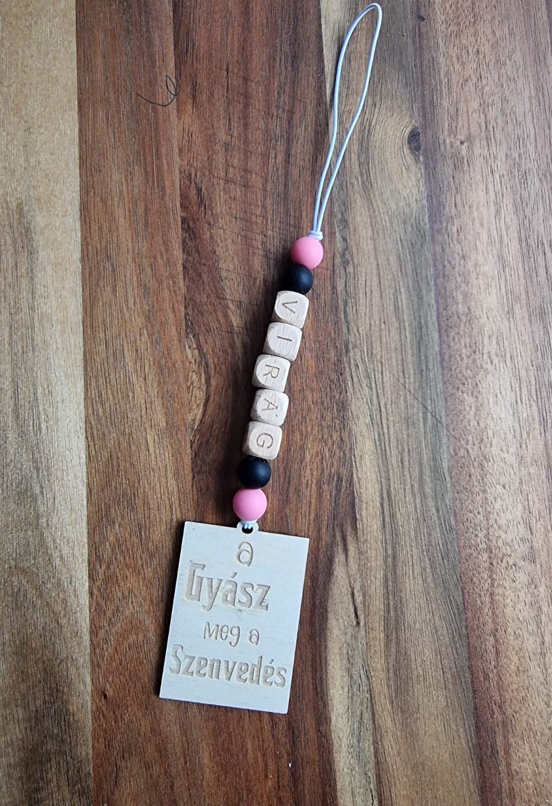 -Téglalap alakú (60×45 mm) gravírozott 3 mm-es rétegelt lemez „a gyász meg a szenvedés” felirattal