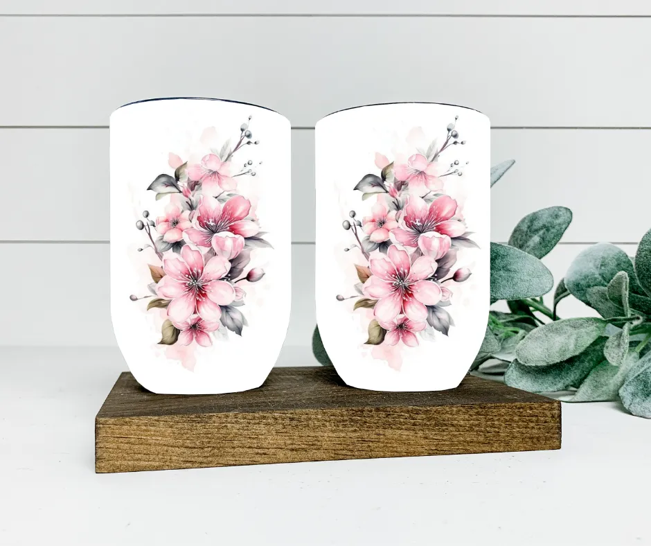 Rózsaszín virág mintával készült prémium minőségű, 350 ml űrtartalmú, rozsdamentes fém termék.